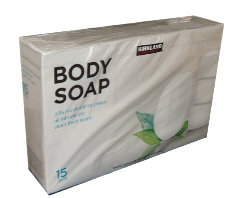 Kirkland Signature Body Soap With 25% Moisturizing Cream Clean Fresh Scent 4.5 Ounce Bars (Pack of 15). Made with all natural oils. Clean fresh scent.Feature