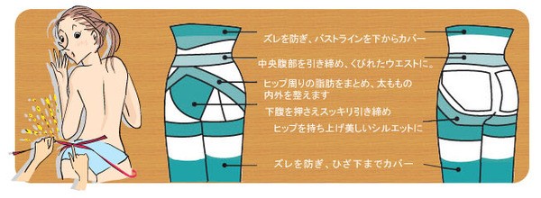 ウエスト・ヒップ・お腹・太ももなど部位に合わせて最適な着圧を採用。グッと引き締めることで、ウエストはキュッ!ヒップはプリッ!と美しいボディラインを描き出します。下半身のスタイルに自信が持てなかった方、春夏向けのガードルをお探しの方、これは一度試してみる価値アリですよ♪