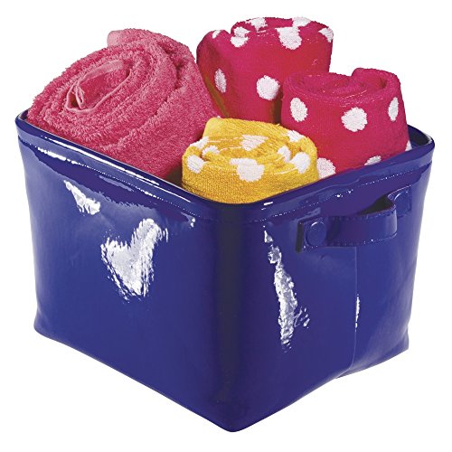 MDESIGN VEGAN PATENT LEATHER STORAGE BIN FOR BATHROOM, COLLEGE DORM, SPA - MEDIUM, NAVY