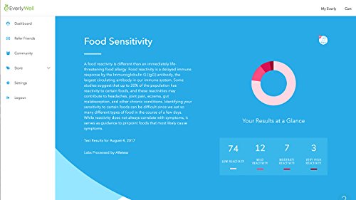 Studio : EverlyWell Publisher : EverlyWell Binding : Health and Beauty Product Description This at-home Food Sensitivity test can help you determine which foods may be causing you unwanted symptoms by identifying the foods that stimulate your immune system to react negatively. It tests your sensitivity (not to be confused with an allergy) to 96 commonly found foods in modern Western diets, including gluten, dairy, wheat, soy and yeast. This is a physician approved-lab test that delivers you fast and easy-to-read results directly to your device, all completed from the comfort of your home. Who should take this test? Do you ever feel like you may have certain symptoms related to foods, such as headaches, stomach pain, diarrhea, or fatigue? You may want to try eliminating possible triggers, but you are not sure where to start? Our Food Sensitivity tests measure your body's IgG immune response to 96 foods that are commonly found in western diets. Unlike a true food allergy or severe medical conditions like celiac disease, an antibody IgG immune response has been demonstrated to offer guidance on what foods may be the best to eliminate. Rather than randomly eliminating foods over many months and assessing your change in symptoms, as improvement in symptoms is always the best test, you can have a directed elimination plan. This test is not a food allergy test. Food allergy tests measure IgE antibodies, which require a larger volume of blood and thus can't be currently taken at home. This test also cannot diagnose Celiac Disease. Food can trigger an immune response which manifests itself in physical symptoms such as: ?Dry and itchy skin ?Other miscellaneous skin problems ?Food intolerance ?Feeling bloated after eating ?Fatigue ?Joint pain ?Migraines ?Headaches ?Gastrointestinal (GI) distress ?Stomach pain 0