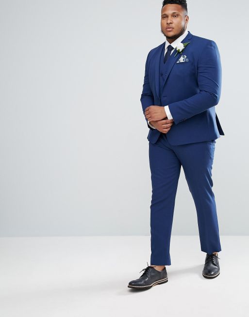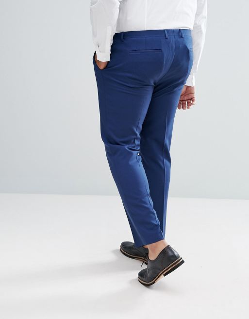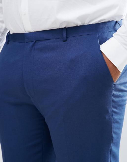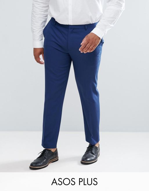 ASOS PLUS Wedding Skinny Suit Trousers In Navy Cross Hatch