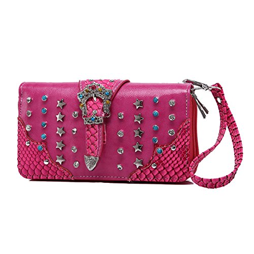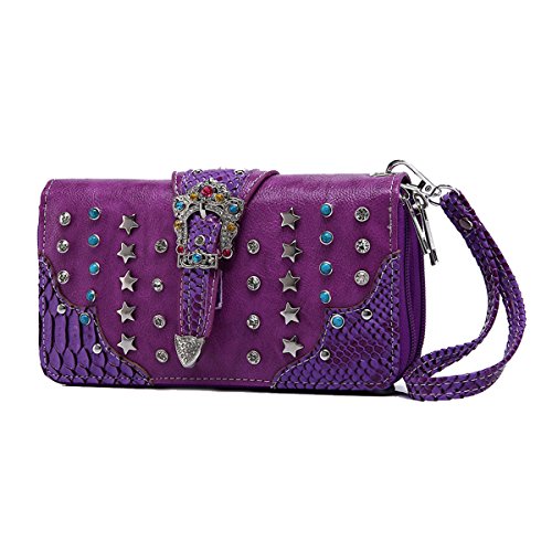 -. Brand : Cowgirl Trendy -. Department : womens -. ProductGroup : Shoes -. ProductTypeName : HANDBAG -. Title : Western Wallet: Multi Colored Stone Silver Buckle with Studs, Stars and Traditional Turquoise Stones Accented Wallet