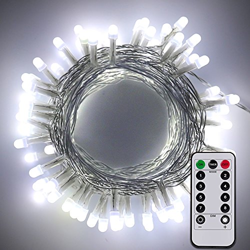 Remote&Timer Fairy Pearl String Lights Pure White,ER CHEN(TM) 33ft 10M 100 LED Waterproof Battery Powered Ambiance Lighting With Remote for Indoor,Outdoor,Patio,Lawn,Landscape,Wedding,Christmas,etc.