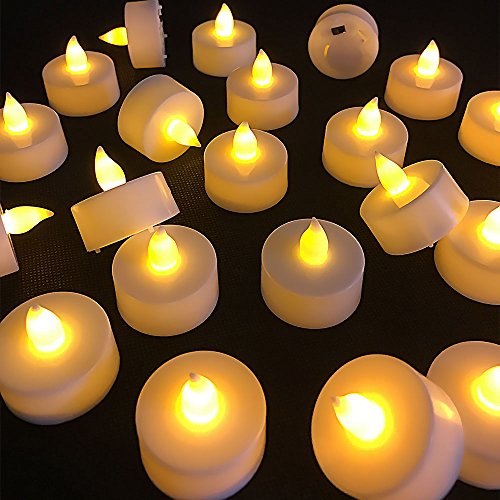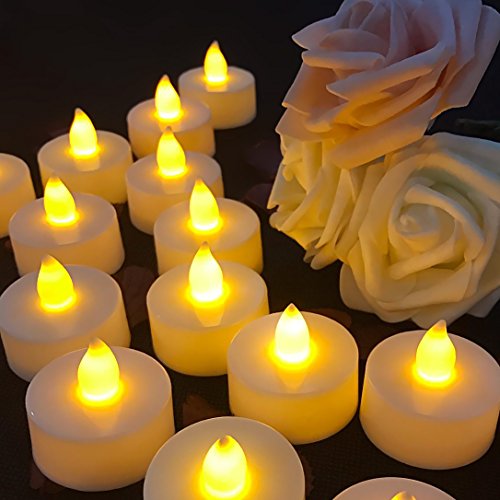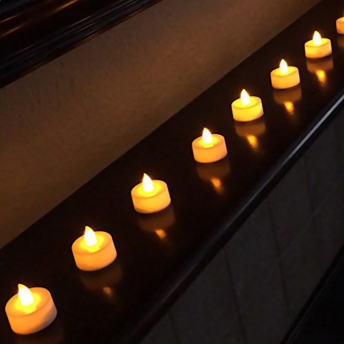 ROMANTIC and PERFECT: The Bright bulb led flameless candles provide realistic flickering effect, amber color Tea lights is a Great decorations for Holidays, Lanter, Fireplace, wedding ceremonies, birthdays, anniversaries, memorial services, church gatherings, DIY and etc.It also can be night light with glass cup or other holders, you can use them in outdoor lanterns above your front door to add warmth and cosiness atmosphere