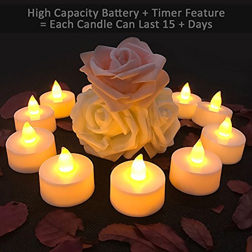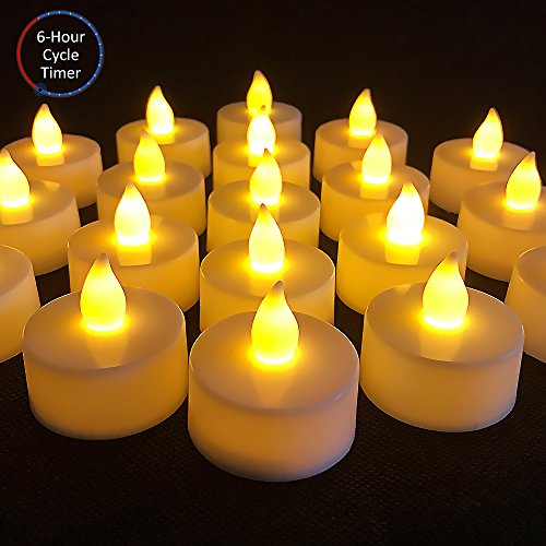 6 Hours Timer, Flameless Led Tea Lights Candles with Timer, 6 Hours On and 18 Hours Off, Flickering Battery Operated Tealights with 200+ Hours Battery life for Wedding, Birthday, party, 12 pcs, Yellow