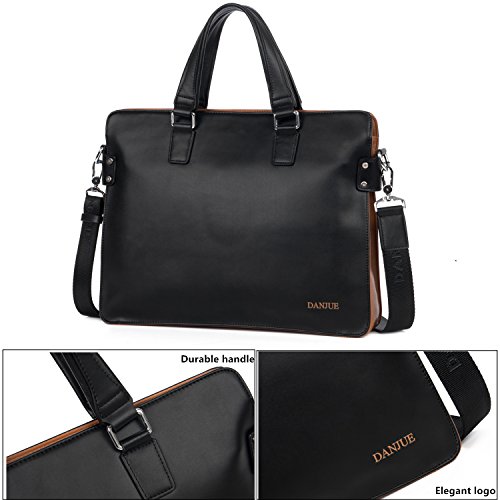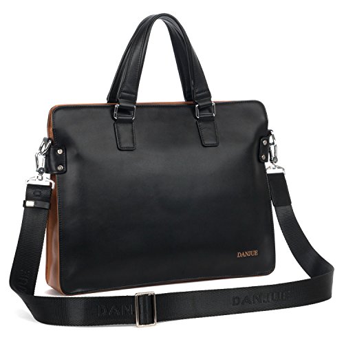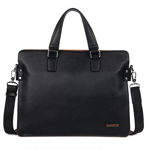 -. Title : DANJUE Leather Laptop Briefcases for Men Zip Closure Shoulder Messenger Bag Laptop 14 Inch Messenger Bag Black 8302-1