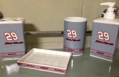 -. Feature : Kevin Harvick #29 NASCAR Bath Set / 4 Piece Porcelain Bathroom Accessories / Includes: Toothbrush Holder, Bar Soap Dish, Cup, & Liquid Soap Pump Dispenser / Officially Licensed NASCAR Product / Unique Gift Idea!
