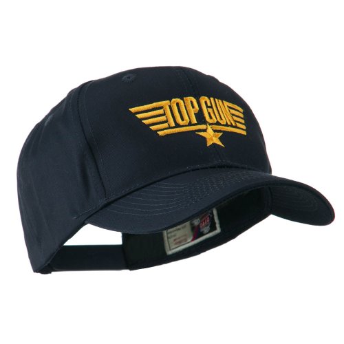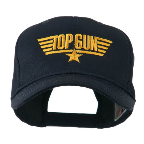 -. Binding : Apparel -. Brand : E4hats -. Color : Blue -. Department : mens -. Feature : Made of 35% cotton and 65% polyester. / One size fits most with adjustable plastic snap closure, fitting up to 7 1/2. / Same material inner hatband. / Adult/Unisex. / Crown measures 3 1/2 inches deep. -. ProductGroup : Apparel -. ProductTypeName : HAT -. Title : US Navy Top Gun Logo Embroidered Cap - Navy