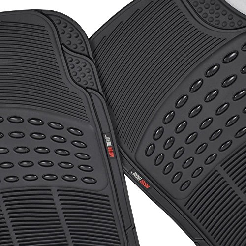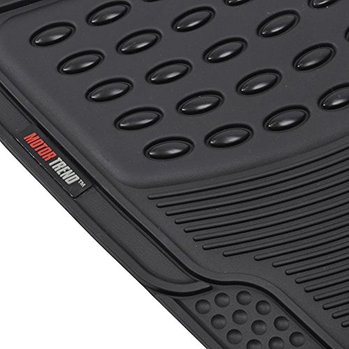 -. Brand : Motor Trend -. ClothingSize : Front 28.7" X 18.5" Back 57.9" X 17.1" -. Color : Black -. Feature : ODORLESS premium mat ( No Disturbing Rubber Smell) / BPA Free Material ( Eco Friendly) / Trimmable to fit your vehicle / Motor Trend and BDK engineered rubber (extra thick and heavy duty durability) - Approved by SGS European Standard. / Front and Rear Dimensions: 27" x 18" and 17" x 54" -. Label : MotorTrend -. Manufacturer : MotorTrend -. ManufacturerPartsWarrantyDescription : Parts -. MPN : MT-883-BK_AMHD -. PackageQuantity : 1 -. PartNumber : MT-883-BK_AMHD -. ProductGroup : Automotive Parts and Accessories -. ProductTypeName : AUTO_ACCESSORY -. Publisher : MotorTrend -. Size : Front 28.7" X 18.5" Back 57.9" X 17.1" -. Studio : MotorTrend -. Title : Black Nibbed Rubber Front Floor Mats & Rear Runner - Odorless & BPA Free