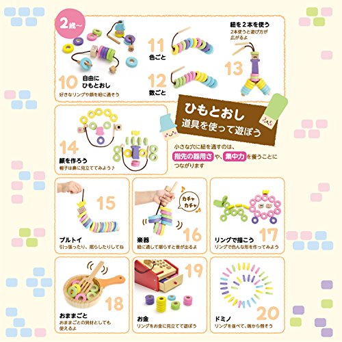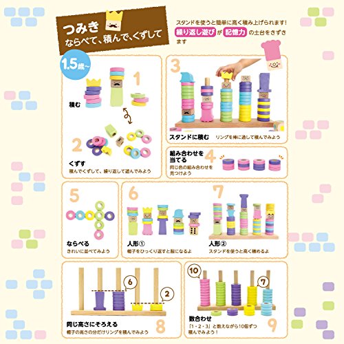成長に合わせた遊びが30種類以上!パーツ収納に便利な木製トレーと遊び方シートがついて、リニューアル新登場!「色分け・順番の理解・数や量の一致・指先遊び・ゲーム」など様々な遊びができ、賢く長くお使いいただけます。一緒に遊ぶ大人の方にも扱いやすいおもちゃです。