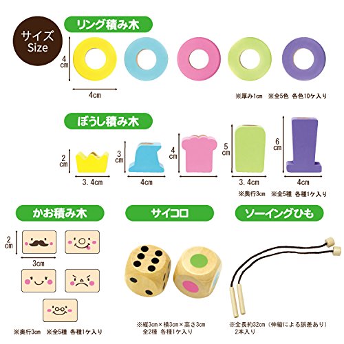 [セット内容]帽子パーツ5種類各1個、リングパーツ5色各10個、顔パーツ5種類各1個、スタンド1個、サイコロ2種類各1個、ソーイングパーツ2個、トレイ1個、遊び方紹介ペーパー×1枚