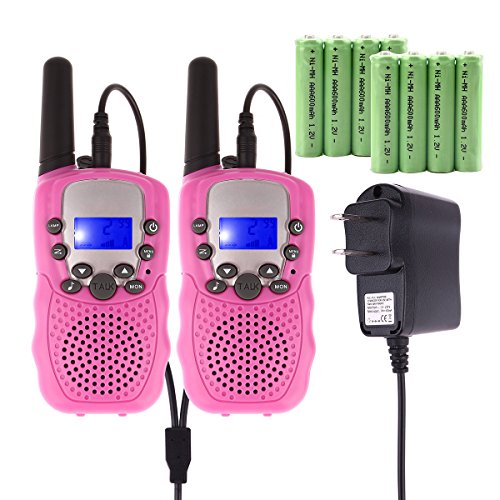 Rechargeable T-388 FRS/GMRS Kids Walkie Talkies 22 Channel 2 Way Radios(Pink, 1 Pair)