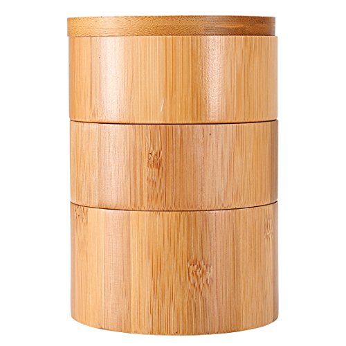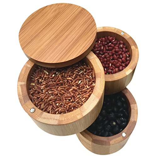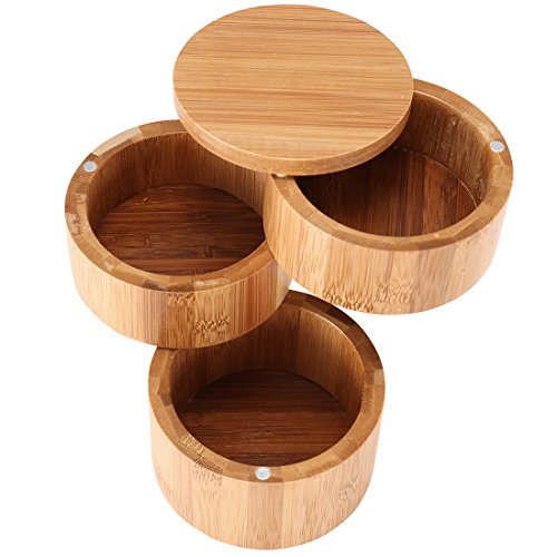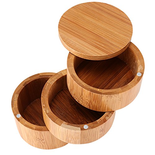Tosnail Bamboo Salt Jar Spice Box with Swivel Magnetic Lid - 3 Tiers