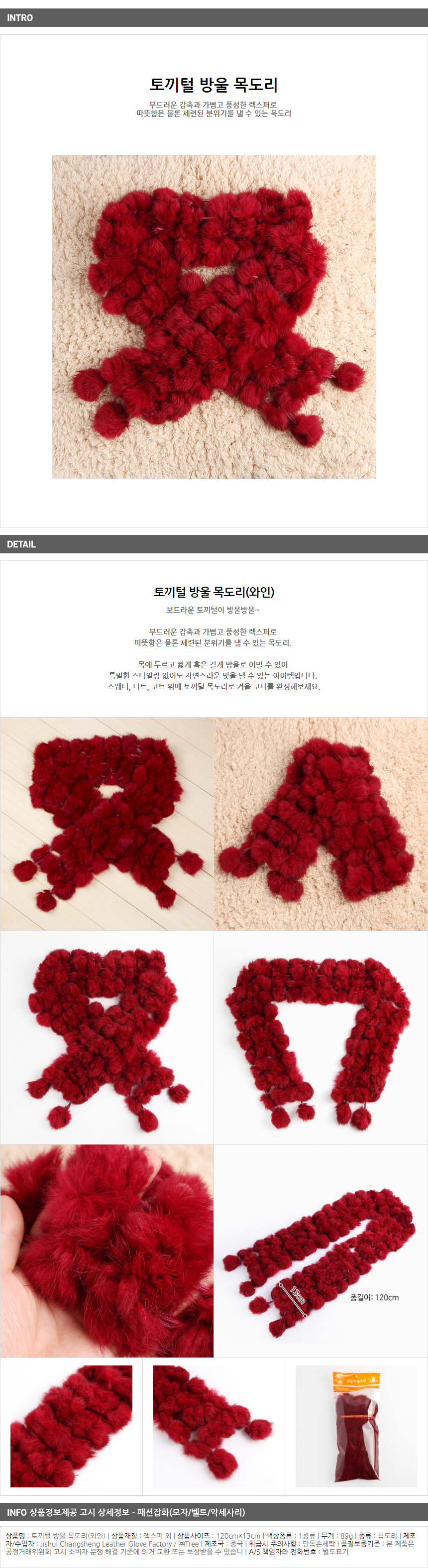 <상품명 : ZP8 토끼털 방울 목도리(와인)>