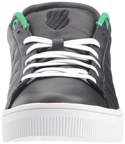 Studio : K-Swiss Publisher : K-Swiss Binding : Apparel Product Description The K-Swiss x Gary Vee Court Frasco is a power player’s sneaker of choice, as ready for the boardroom as it is for the streets. Dubbed the 002 by the collection’s namesake, the low top sneaker’s premium leather upper in rich black features subtle, debossed K-Swiss branding details and a pop of color from the mesh collar liner and final shoelace eyelets in a bright kelly green. Tonal stitching and waxed laces with woodgrain aglets add a premium touch while the Court Frasco’s high-walled outsole give it a contemporary, luxe look, blending classic court style with modern sophistication. 0