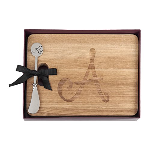 ANDREW FAMILY Monogram Acacia Wood Cheese Board With Spreader-A