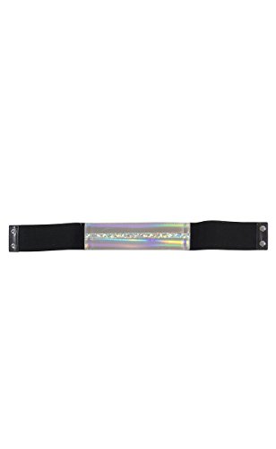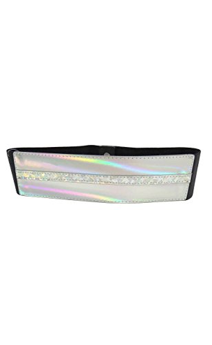 Product DescriptionBelt features faux leather holographic front, elastic band, 2.5" width, and two snap button back closure.0