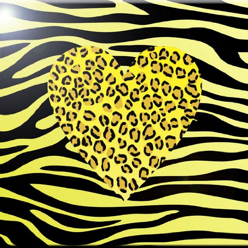 Rikki Knight RK-8intilec-2907 8" X 8" Yellow Leopard Heart on Zebra Background Design Ceramic Art Tile