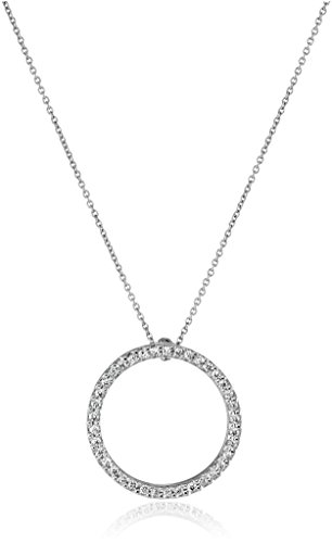 -. Feature : White gold link-chain necklace featuring round pendant studded with round-cut diamonds nestled in shared prongs / Lobster-claw clasp / Each piece of Roberto Coin Jewelry contains a tiny hidden synthetic ruby. According to ancient myth, a ruby worn close to the skin brings the wearer health, happiness, prosperity and longevity. / Made in Italy