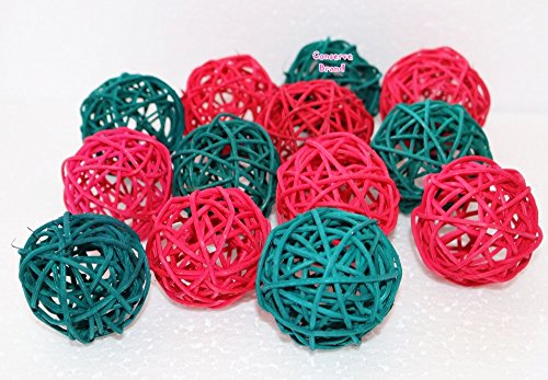 Christmas Gifts : Small Red, Green Rattan Ball, Wicker Balls, DIY Vase And Bowl Filler Ornament, Decorative spheres balls, Perfect For Decoration And Party 2.5 inch, 12 Pcs.