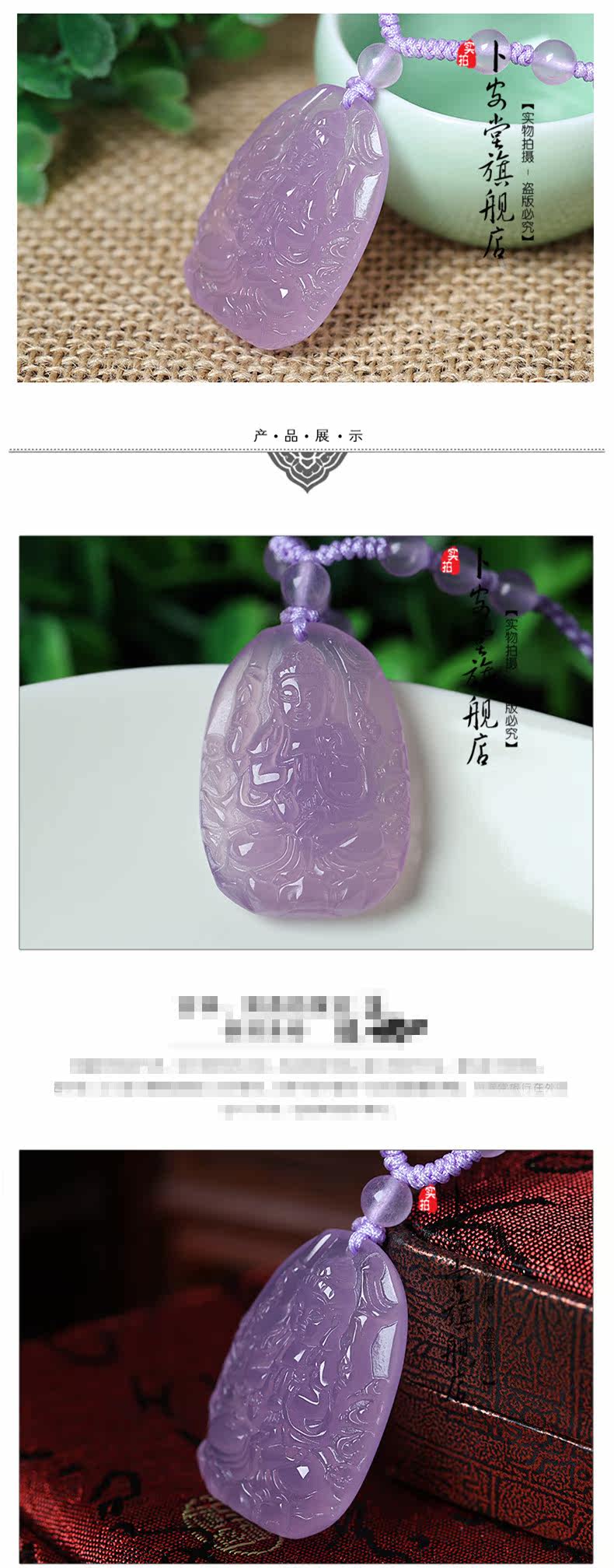 天然粉紫玉髓千手观音菩萨生肖鼠本命佛守护神吊坠