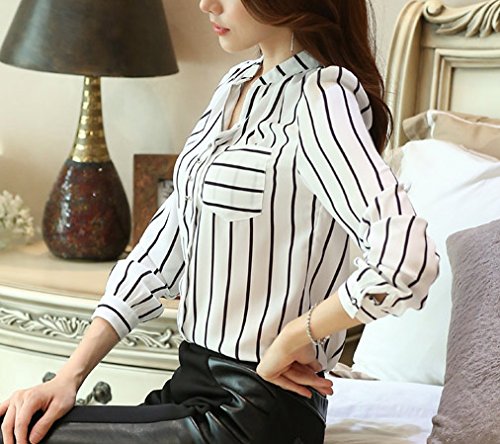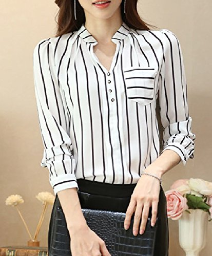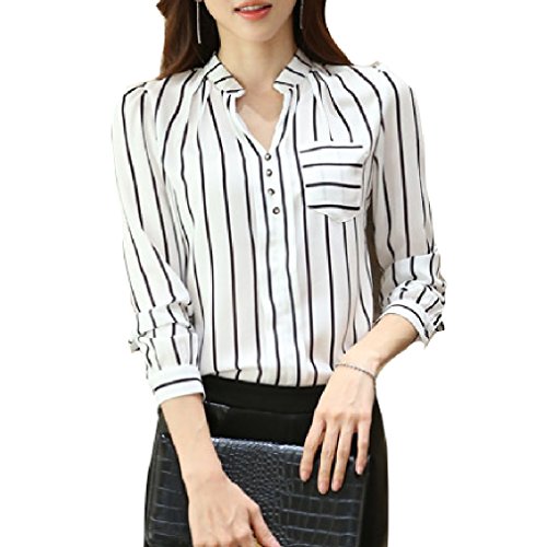 -. Title : 【 Big laugh 】 レディース トップス 長袖 ストライプ スタイリッシュ ブラウス シャツ おしゃれ きれいめ 人気 ( XXL , ホワイト )