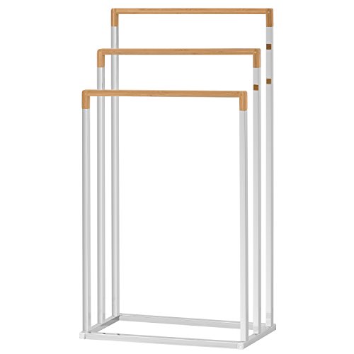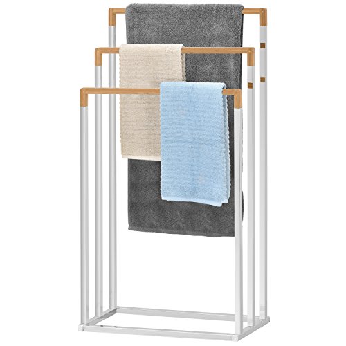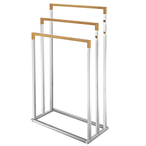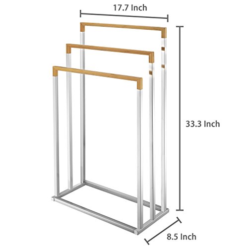 Freestanding Chrome Plated 3-Tier Bamboo Towel Bar, Bathroom Towel Rack
