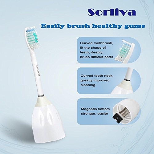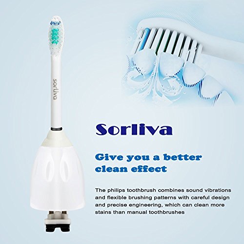 -. Feature : √SOFT BRISTLES & SUPERIOR QUALITY. The bristles are made of end-rounded Tynex Nylon, the ultra soft nylon protects your gums better than hard bristles. The bristles contoured which fit the natural shape of your teeth, deeply cleaning teeth and reduce gum damage. / √COMPATIBLE WITH MOST MODELS. The tooth brushheads are compatible with Philips Sonicare Essence, E-Series, Advance, Elite, Clean Care and Xtreme Brush Handles. The detailed models showed in the list under. / √PLAQUE REMOVAL & GINGIVITIES PROTECTION. Approved for dental health and safety standard. Sorliva toothbrush heads removes more plaque and stain than manual toothbrush, greatly reduce gingivitis. / √FREE ACCESSORY HYGIENIC CAPS INCLUDED. Free accessory hygienic caps comes along, easily for brush head's packing and storing without worrying about bacteria. / √REPLACEMET EVERY 1 MONTHS. It's recommend to replace brush heads every 1 months for preventing dental caries, periodontitis, pulpitis, crown fracture, root fracture, dentin hypersensitivity, gingivitis.