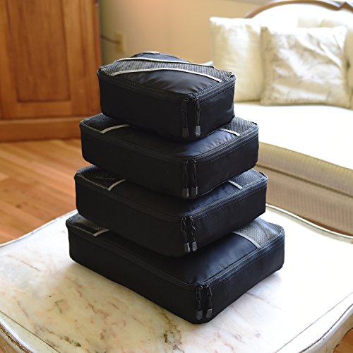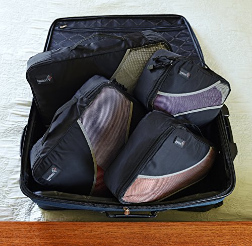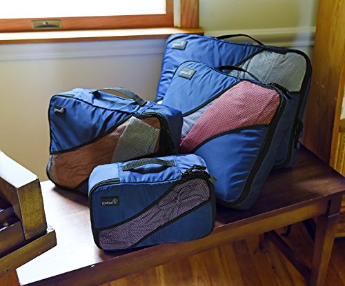 -. Brand : Ivation -. Color : Blue -. Department : unisex-adult (lage only) -. Feature : 4 Convenient Cube Sizes Save Space & Help You Stay Organized While Traveling. / Mesh Panels in Durable Nylon Construction Enable You to See What You Packed while allowing your clothes to breath. / Industry-Leading YKK Zippers Offer Smooth Glide; No Sticking, Slipping or Jamming. / Nesting Design Ensures Cubes Remain Organized During Travel & While in Storage. / Bonus Promotional Laundry Bag Keeps Your Dirty & Clean Laundry Separate on the Trip Home. -. ProductGroup : Apparel -. ProductTypeName : LAGE -. Size : Large -. Title : Ivation Packing Cubes Travel Organizer Bags. Lage Accessories. 4 Piece Value Set. Durable Nylon & Breathable Mesh Panels. Bonus Promotional Laundry Shoe Bag.