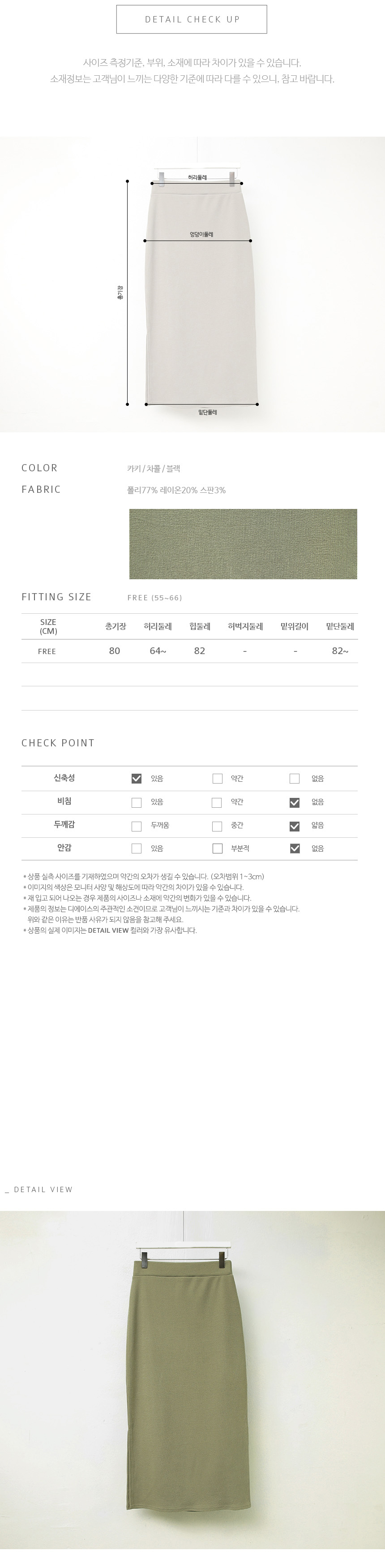 심플한 H라인의 양트임 스커트부드러운 텐션감 좋은 소재감이단정하게 H라인으로 떨어지는 스타일로양쪽 깊은 트임이 있어여름 시즌까지 덥지 않고편하게 입기 좋은 스커트에요깔끔하게 재단된 허리 밴딩으로상의를 넣어 입어도 예쁜기본 라인의 스커트랍니다색상은 카키, 챠콜, 블랙사이즈는 FREE 55~66까지 가능하답니다