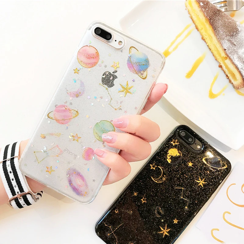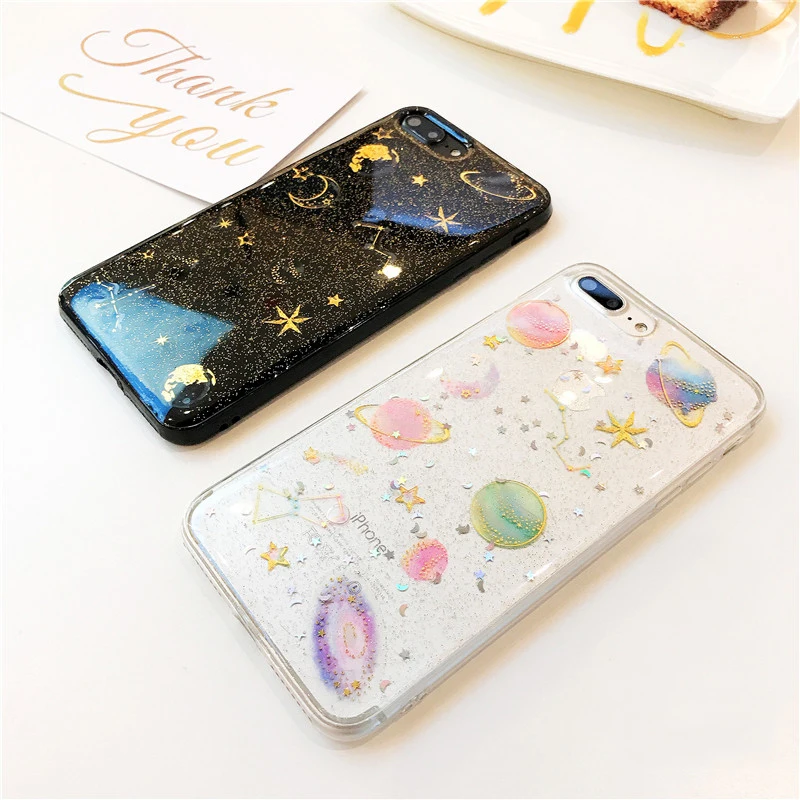 Features:Fashion Glitter Space planet phone Cases