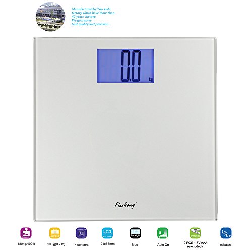 Finnhomy Digital Bathroom Body Weight Scale Step-on Auto-on Auto-Calibrated 180 kg 400 lb Large Capacity Extra Big and Clear 4" Backlit LCD Display Slim...