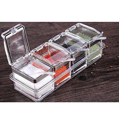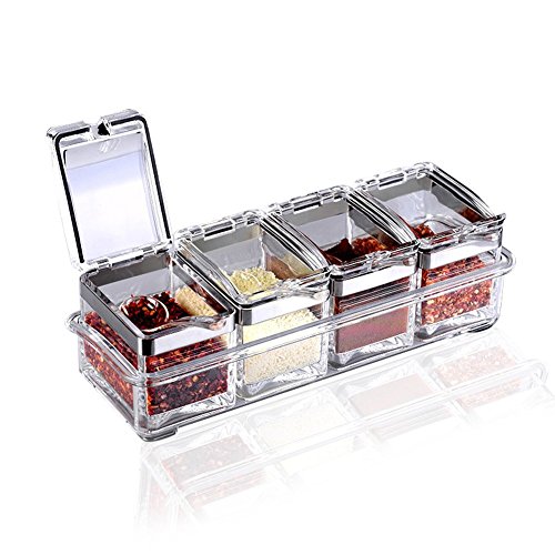 TOAO 4 Piece Separable Acrylic Spice Rack Jars & Rack, Spice Container,Seasoning Box Spice Pots with Spoons-Storage Container Condiment Jars--New Update Independent Cover and Non-slip Rubber