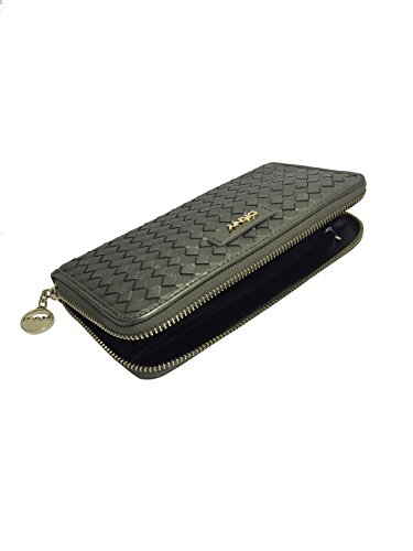 Title : DKNY - SLGS Metallic Woven Wallet, Gunmetal, OS