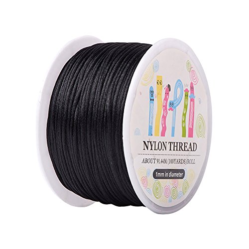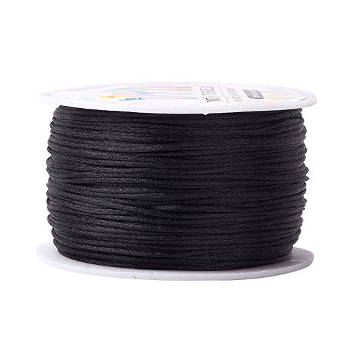 Pandahall 1 Roll 1mm x 100yards Black Rattail Satin Nylon Trim Cord Chinese Knot