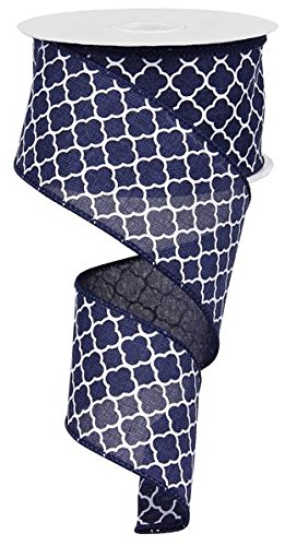 Quatrefoil Wired Canvas Faux Burlap Ribbon 10 Yards X 2.5" (Navy Blue) : RG135819