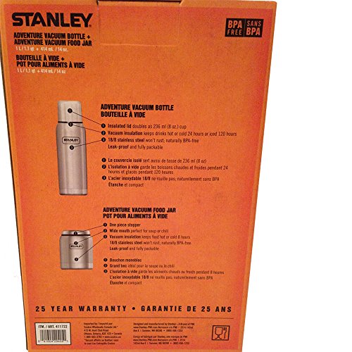 STANLEY ADVENTURE SERIES INSULATED 1.1 QT VACUUM BOTTLE AND 14 OZ FOOD JAR (STAINLESS STEEL)