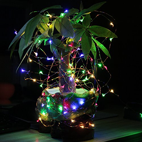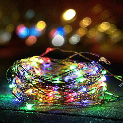 - 100 multi-color(red/green/yellow/blue) LED bulbs with 33 feet copper wire, automatically turn on when it's dark and turn off during the day