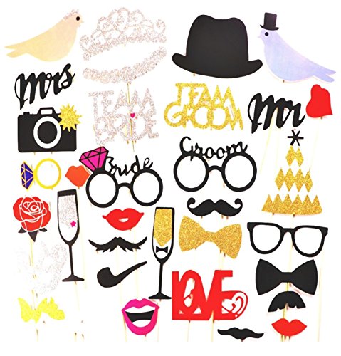 FUN WEDDING PARTY MEMORIES WITH 34 PHOTO PROPS – 34 unique photo props for you and your guests to create memorable moments of your special day.