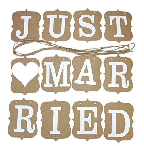 JUST MARRIED BANNER FOR PHOTOS AND DISPLAY – Use the Just Married banner in photos of the new couple and then display it in a prominent location at your party to announce the bride and groom.