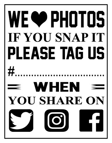 BONUS SOCIAL MEDIA PHOTO SHARING SIGN – Use the included social media sign to let your guests know how they can share their selfies with you on social media.Measures 8.5 inches x 11.5 inches.