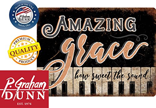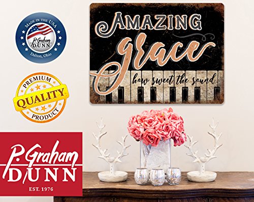 Amazing Grace How Sweet the Sound Piano Keys Design 16 x 12 Metal Tin Wall Sign Plaque