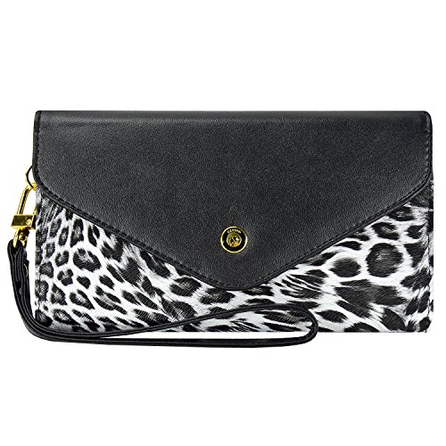 caseen® Agnes Wallet Wristlet Clutch (Leopard) for Apple iPhone 6S / 6 Plus, Samsung Galaxy S7 Edge S6 / Note 5 4, Nexus 6P 6 5X, HTC One M9 / M8, LG G5 G4 G3, Moto X E G [Most Smartphone]