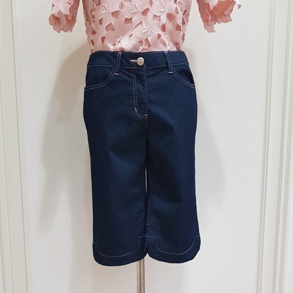 편안하게 핏되는 데님 반바지 입니다. 와이존을 가리는 롱블라우스와 매칭 시 슬림해 보입니다.