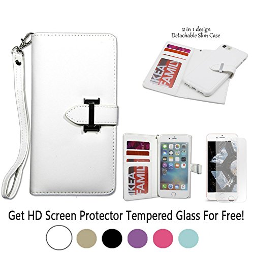 -. Title : iPhone 6/6S Wallet Case for Women with Magnet Detachable Slim Case and Magnet Snap Closure+Back Zipper Pocket and Wirstlet; Made with Premium PU Leather