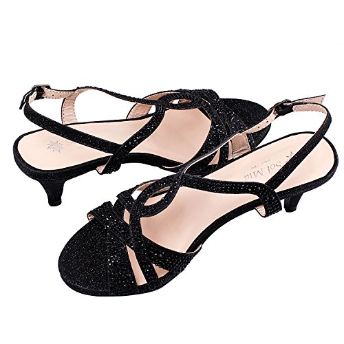 Binding : Apparel Product Description Make a Fashion Statement with these glitter rhinestone slingback low heel sandals, featuring an open toe, adjustable sling back, glitter, a slightly padded insole for comfort, and an approximate 2.5 inch low heel. (Please note that these measurements are based on a size 7). Man made materials Vegan Friendly. This style runs Slightly Smaller. 0