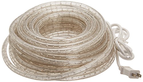 - Includes rope light, pre-connected (removable) five foot power cord, removable end cap and 50 mounting clips