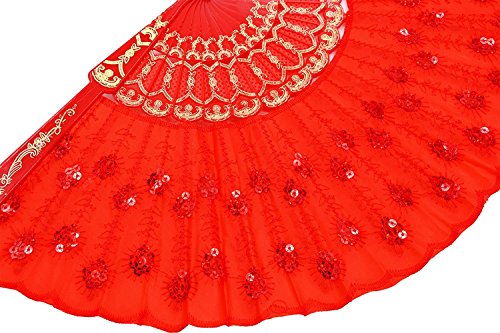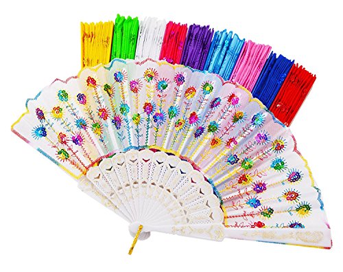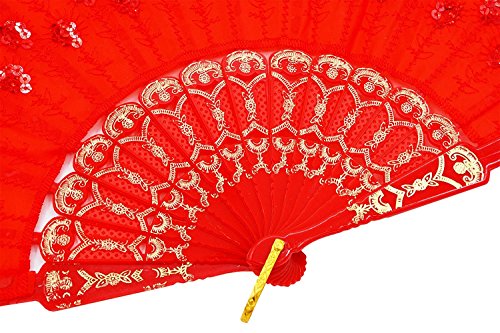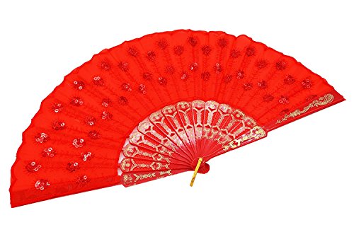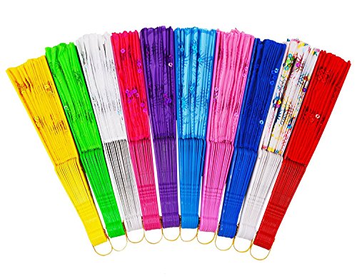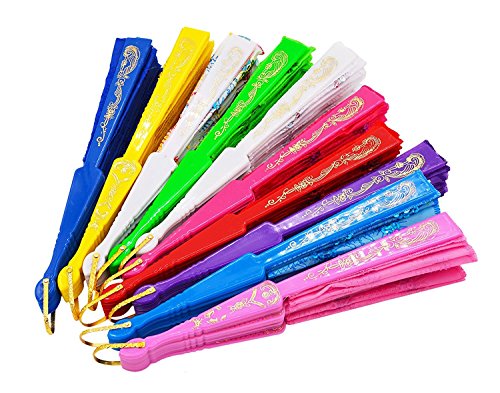GZZOU Chinese/Japenese Style Sequins Peafowl Folding Fans,9"(23cm) Gilding Plastic Ribs Frame Hand Fan Dance Fans Plastic Sequins Fan Gift Decorative Fan Wedding Fan 10PCS (Multicolor)