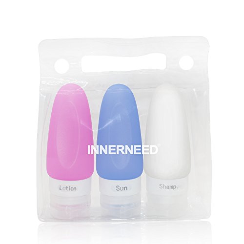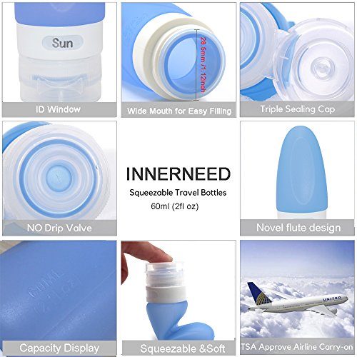 INNERNEED Portable Silicone Travel Size Bottles Set Squeezable and Refillable Bottle Shampoo Container (2oz)