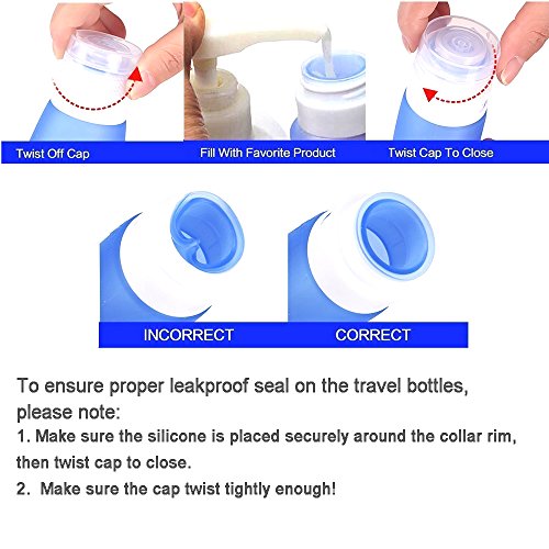 - Content identification: Switchable label, each travel bottle has pre-printed labels (Shamp./ Soap/ Lotion/ Cond./ Sun/ Empty) to identify liquid in the bottle. Different colors also can help you identify the bottle.